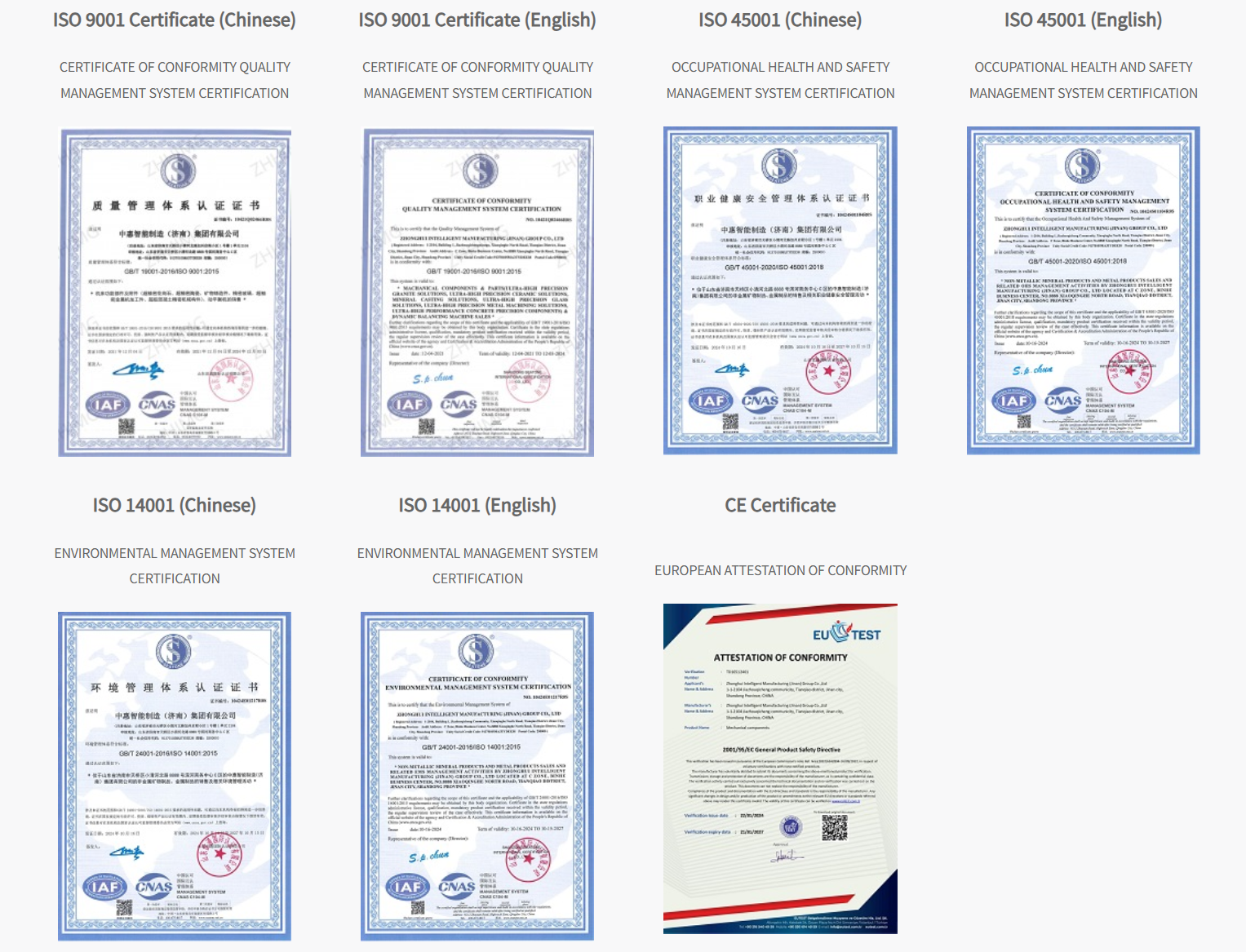Имкониятҳои фармоишӣ бояд дастгирии мушаххасоти ғайристандартӣ (масалан, платформаҳои формати 3000×6000 мм), буришҳои махсус ва геометрияҳои номунтазамро бо мӯҳлатҳои кӯтоҳмуддат (фармоишҳои стандартӣ ≤10 рӯз) дар бар гиранд. Zhonghui Intelligent Manufacturing (Jinan) Group Co., Ltd дар давоми ҳафт рӯз платформаи фармоишии 2500 × 5000 мм-ро бомуваффақият расонидааст, то ба талаботи таъхирнопазири истеҳсоли нимноқилҳо ҷавобгӯ бошад. Илова бар ин, истеҳсолкунандагон бояд дорои таҷҳизоти пешрафта ба монанди марказҳои коркарди панҷ меҳвари CNC ва системаҳои назорати интерферометрии лазерӣ бошанд, то дақиқиро дар истеҳсоли ҷузъҳои мураккаб таъмин кунанд.